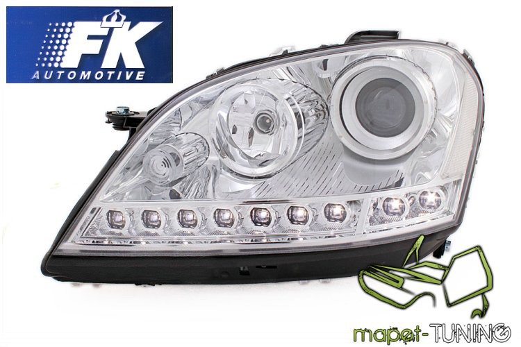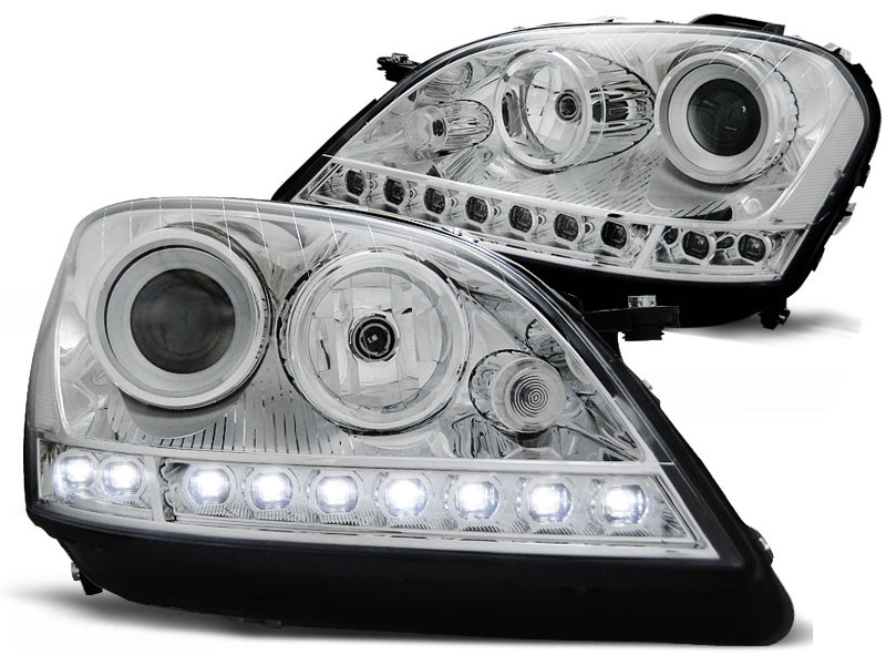 Lampy przednie do: Mercedes M-klasa W164 ML - CHROM - z paskiem diód LED i z soczewką