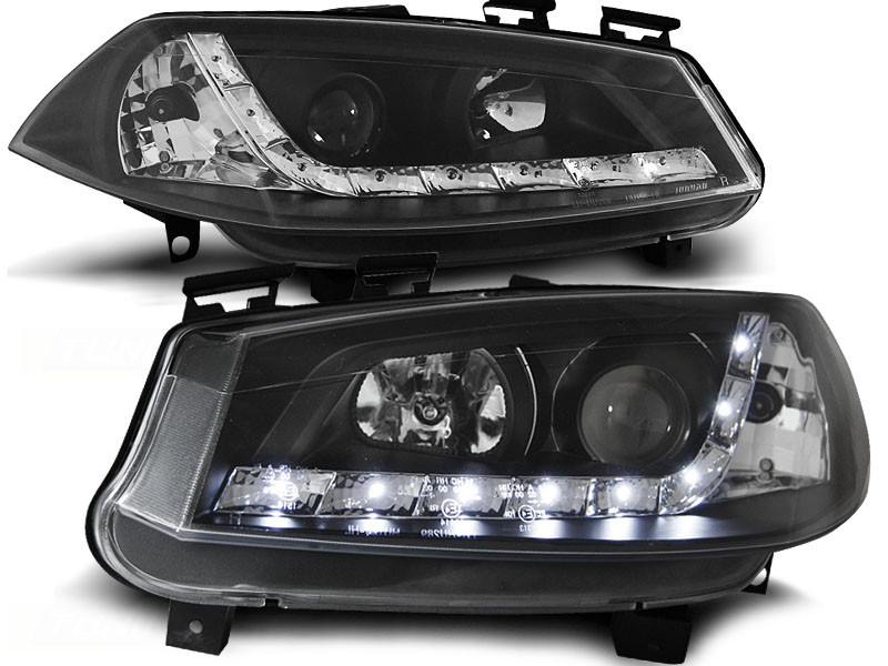 Lampy przednie do: Renault Megane - BLACK LED - ciemne lampy z diodowymi świetlnymi paskami
