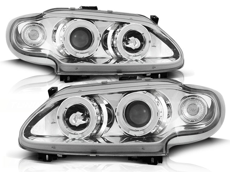 Lampy przednie do: Renault Megane - Angel Eyes CHROM - przezroczyste z soczewką + Ringi