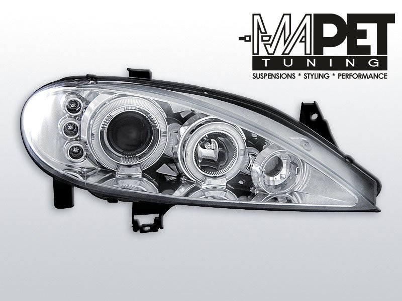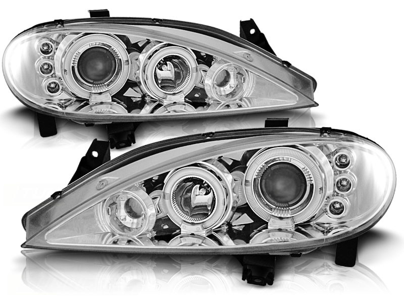 Lampy przednie do: Renault Megane - Angel Eyes CHROM - przezroczyste z soczewką + Ringi
