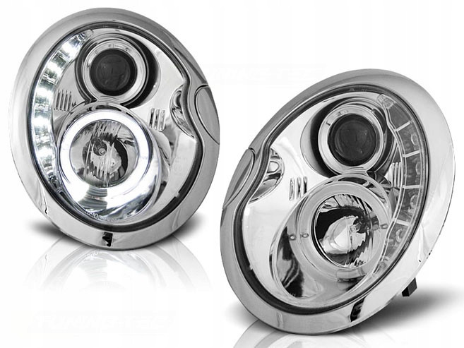 Lampy przednie do: Mini Cooper - Angel Eyes + led CHROM z soczewką + Ringi