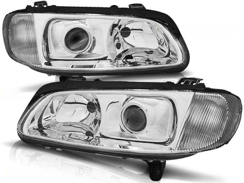 Lampy przednie do: Opel Omega B - CHROM - przezroczyste z soczewką