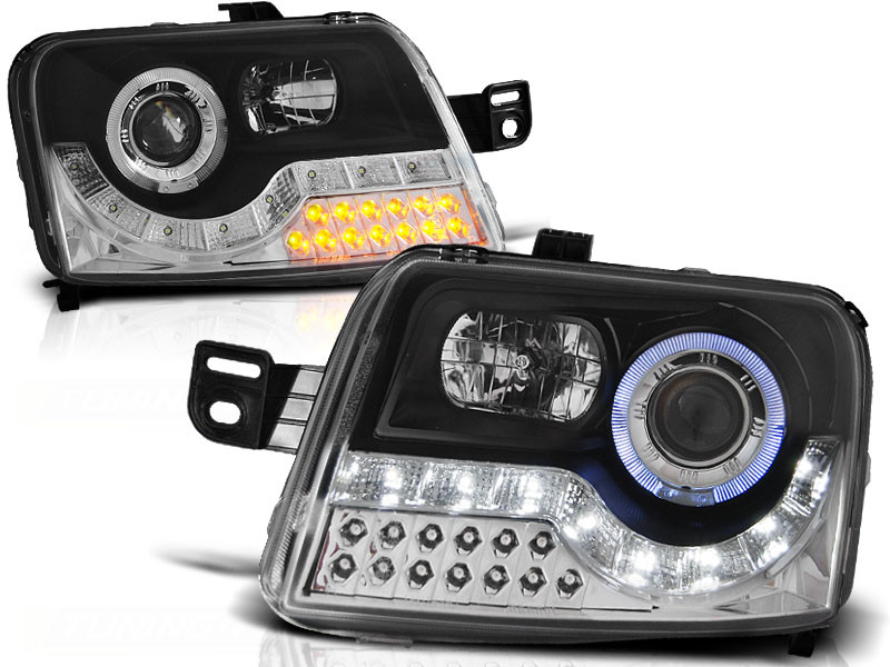 Nowoczesne przezroczyste reflektory typu Clear znanego producenta oświetlenia samochodowego. Wykonane w najnowszych trendach z paskiem diód tzw. DayLine.