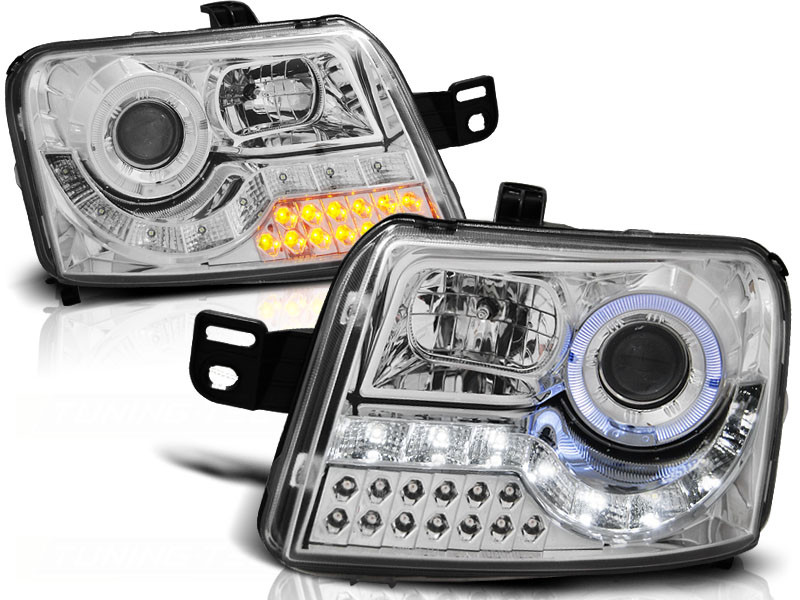 Lampy przednie do: Fiat Panda - CHROM LED - przezroczyste lampy z diodowymi świetlnymi paskami i diodowym kierunkowskazem