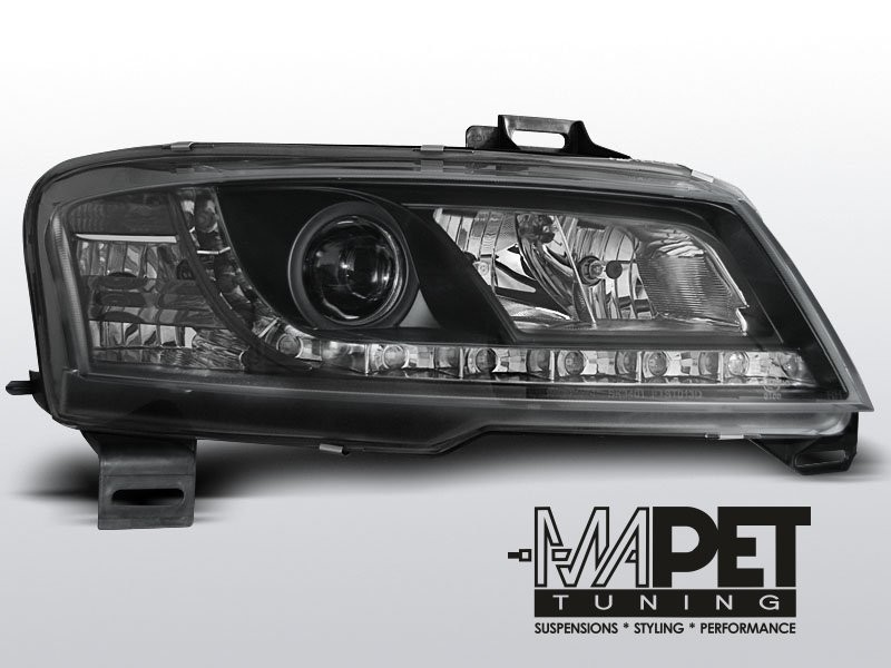 Lampy przednie do: Fiat Stilo 3d - BLACK LED - przezroczyste ciemne lampy z diodowymi świetlnymi paskami