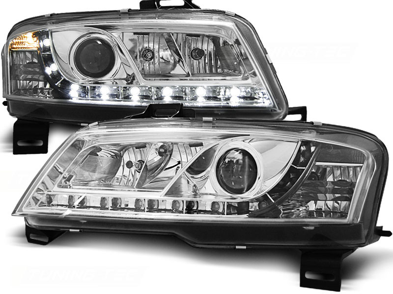 Lampy przednie do: Fiat Stilo 3d - CHROM LED - przezroczyste lampy z diodowymi świetlnymi paskami