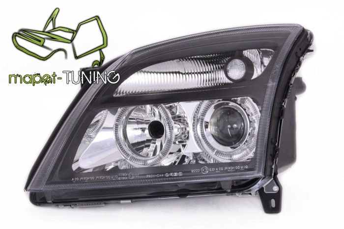 Lampy przednie do: Opel Vectra C - clearglass Black Angel Eyes- przezroczyste lampy z ringami i kierunkowskazami