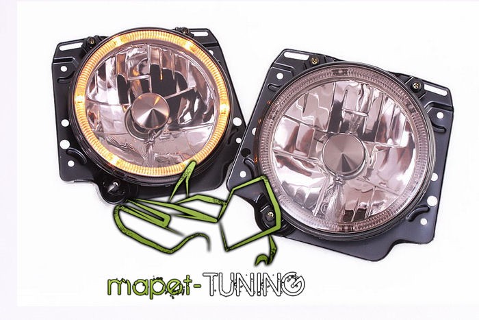 Lampy przednie do: VW Golf II - clearglass Angel Eyes Black- przezroczyste ciemne lampy + Ringi