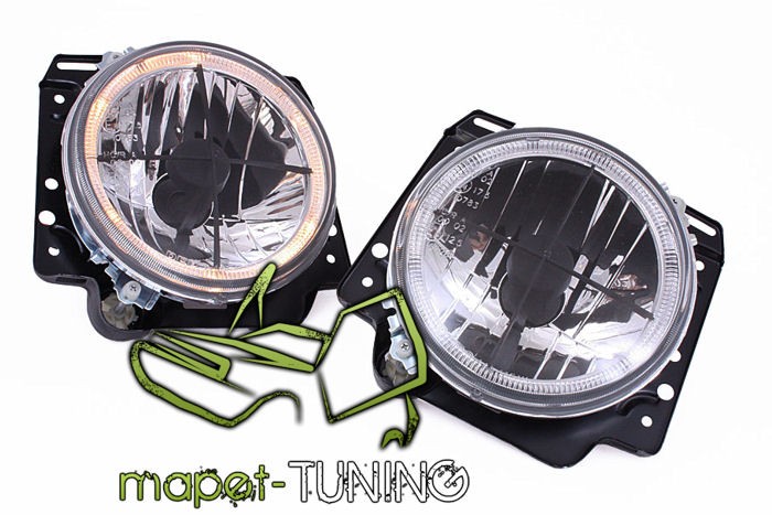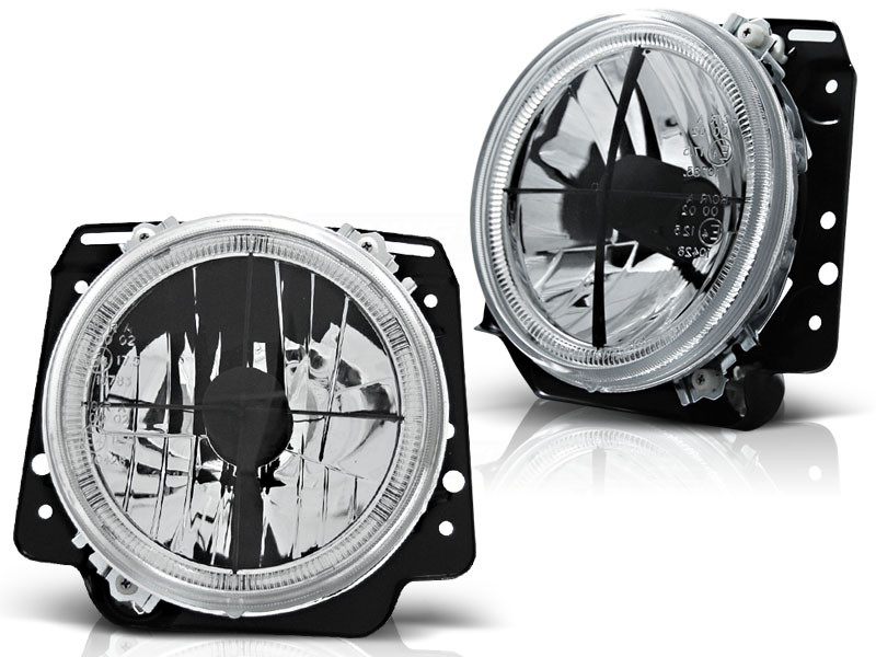Lampy przednie do: VW Golf II - clearglass Angel Eyes Cross - przezroczyste lampy chrom z czarnym krzyżem + Ringi
