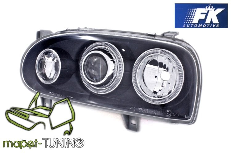 Lampy przednie do: VW Golf III Angel Eyes BLACK - ciemne przezroczyste z soczewkami i ringami + kierunkowskaz