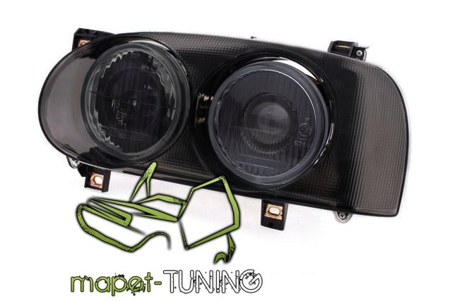 Lampy przednie do: VW Golf III - tzw. PROJEKTORY - soczewkowe lampy z ciemnymi wkładami i elementami optycznymi
