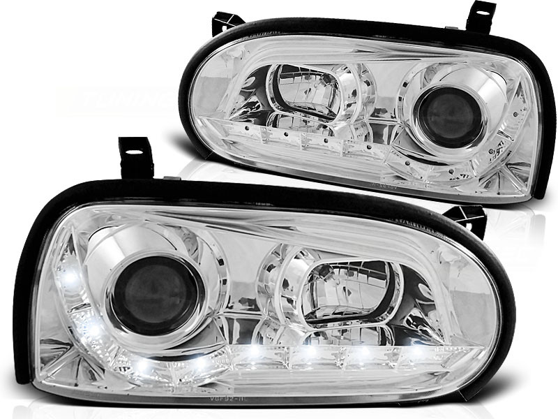 Lampy przednie do: VW Golf 3 - LED CHROM  - przezroczyste lampy z diodowymi świetlnymi paskami