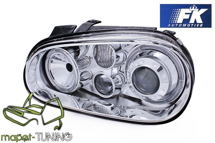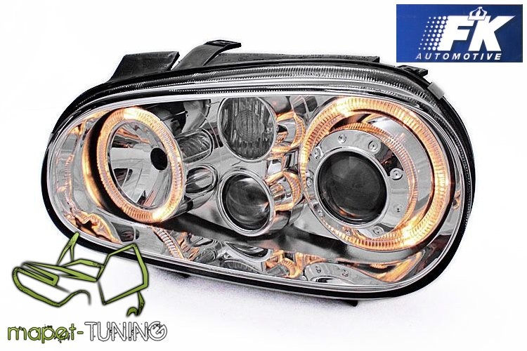 Lampy przód VW Golf 4 clear CHROM soczewkowe Angel Eyes LPVW42 DEPO