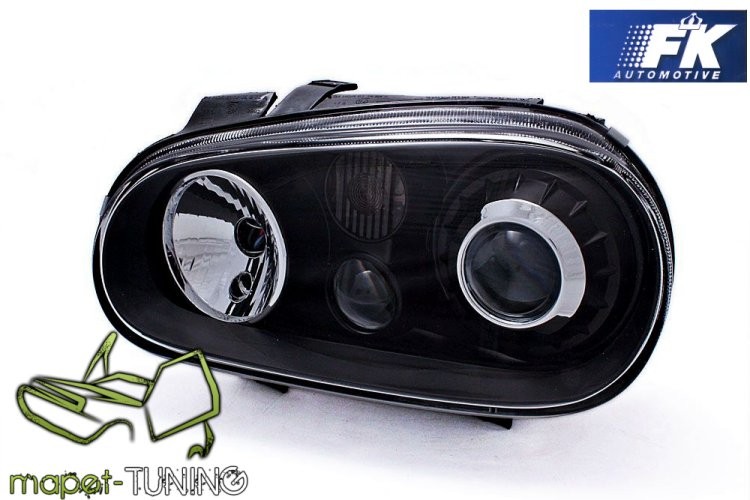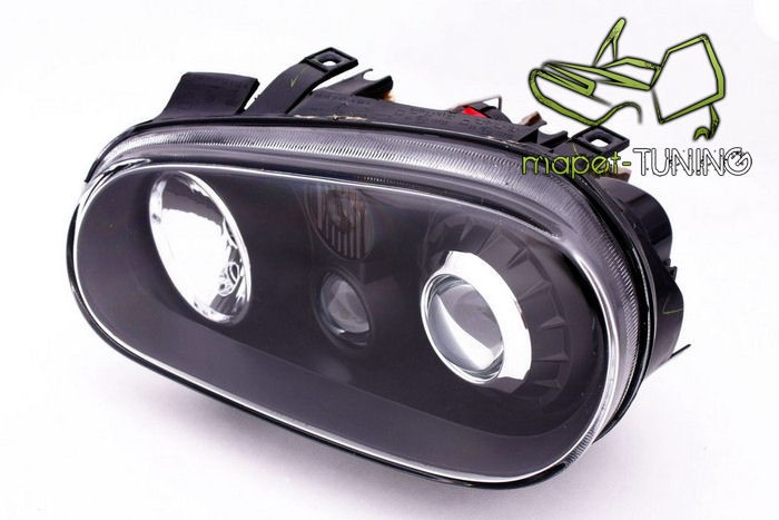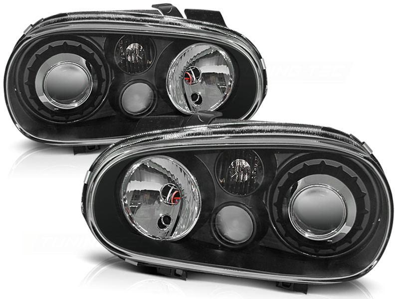 Lampy przednie do: VW Golf IV - clearglass BLACK - przezroczyste soczewkowe z halogenem - R32 Look
