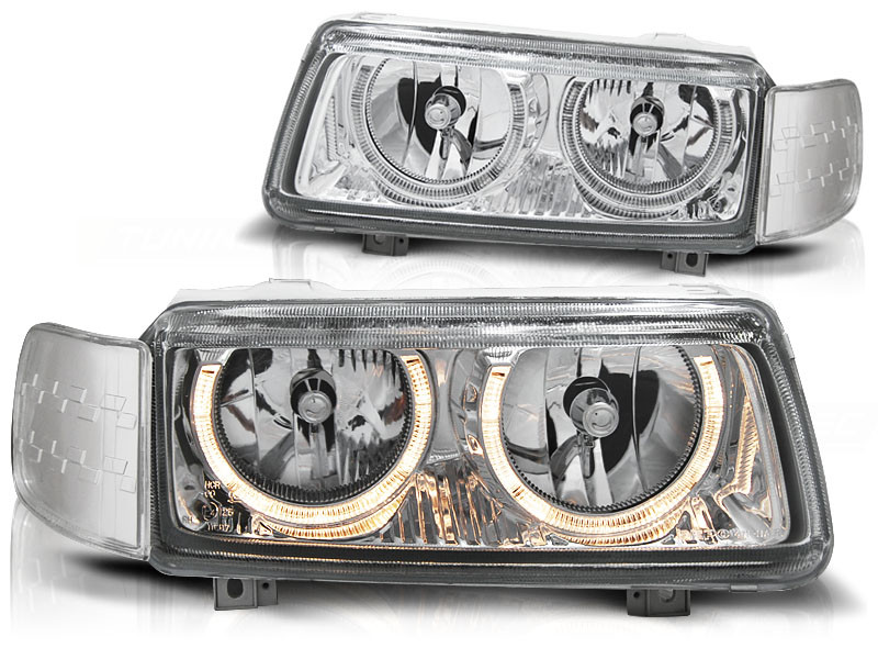 Lampy przednie do: VW Passat 35i B4 Angel Eyes Chrom - przezroczyste z ringami