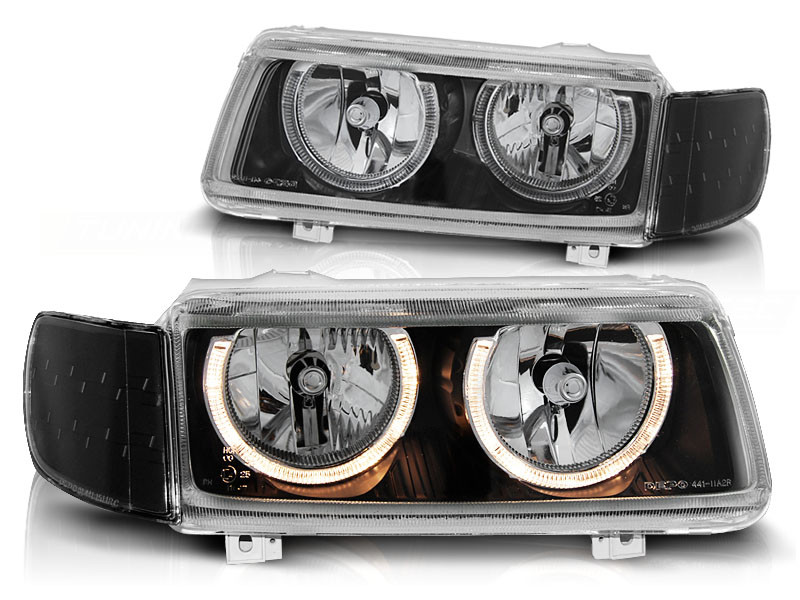 Lampy przednie do: VW Passat 35i B4 Angel Eyes BLACK - przezroczyste czarne z ringami