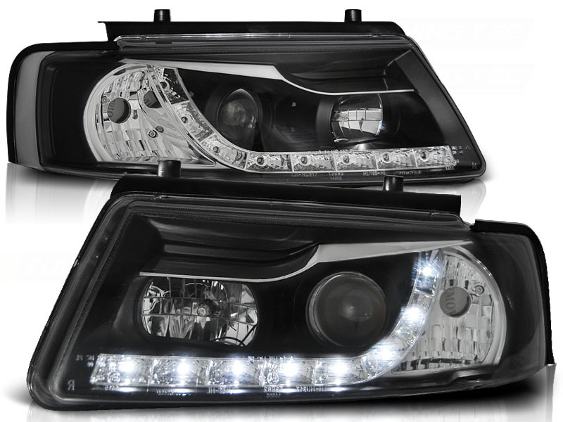 Lampy przednie do: VW Passat B5 - BLACK LED - DEVIL EYES - czarne lampy z diodowymi świetlnymi paskami