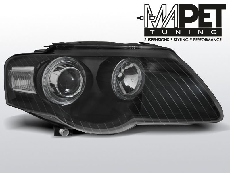 Lampy przednie do: VW Passat B6 3C - Angel Eyes BLACK - czarne ciemne lampy z Ringami