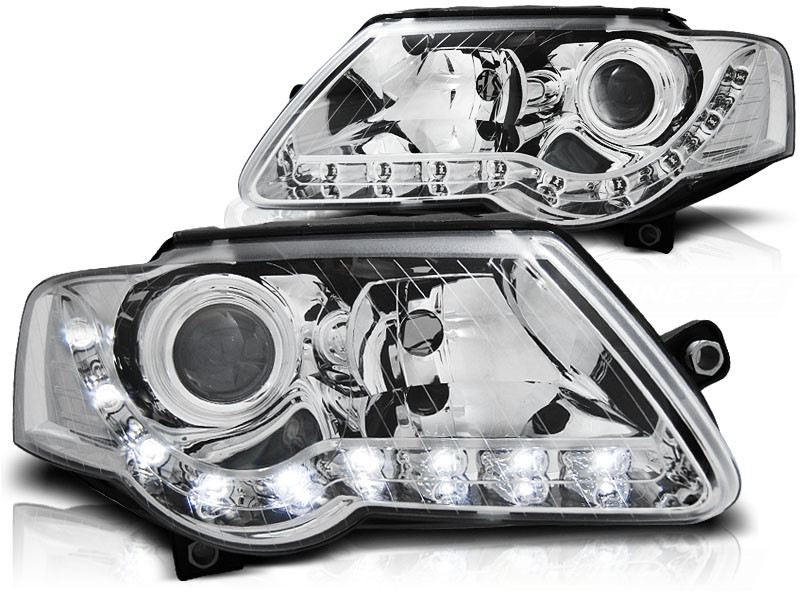 Lampy przednie do: VW Passat B6 3C - CHROM LED - z diodowymi świetlnymi paskami