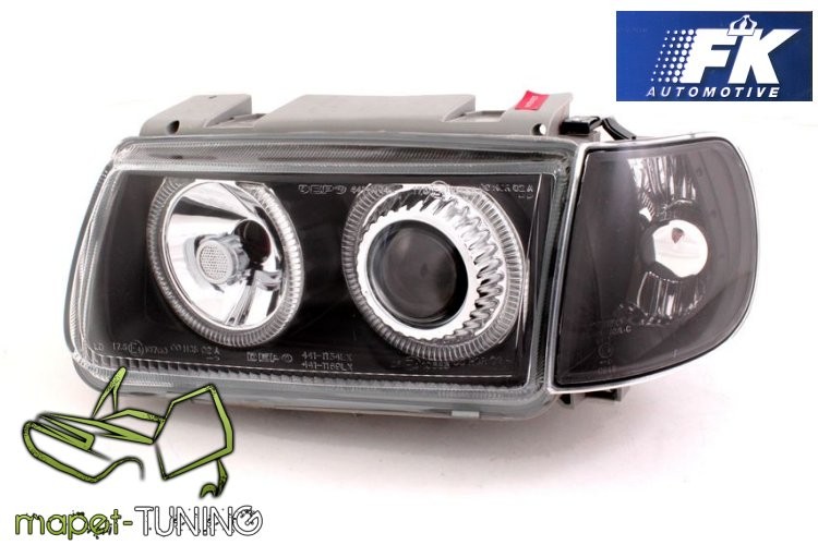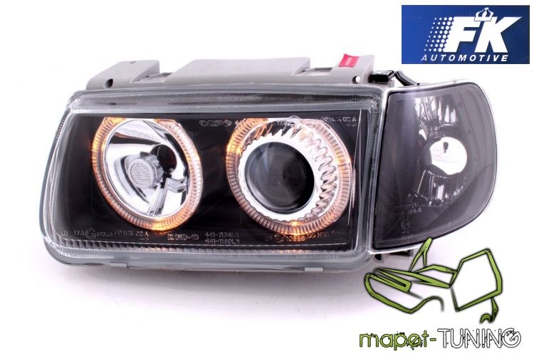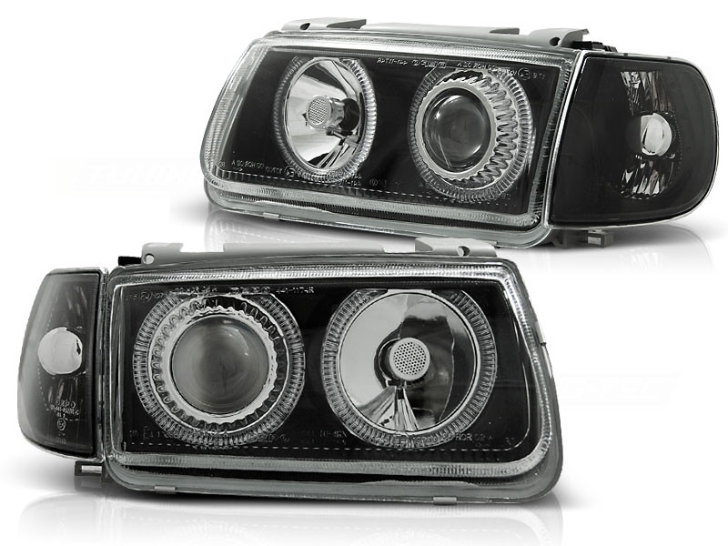 Lampy przednie do: VW polo 6N - przezroczyste z ciemnym wkładem z soczewką + kierunkowskazy i 2 ringi