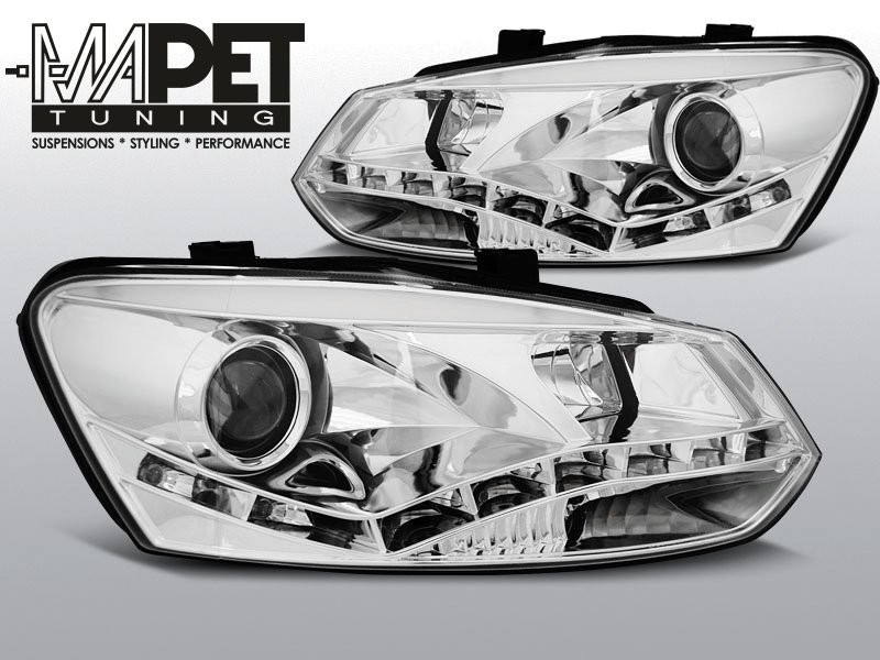 Lampy przód VW POLO 6R - DRL CHROM LED - diodowe dzienne - LPVWN3