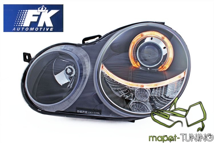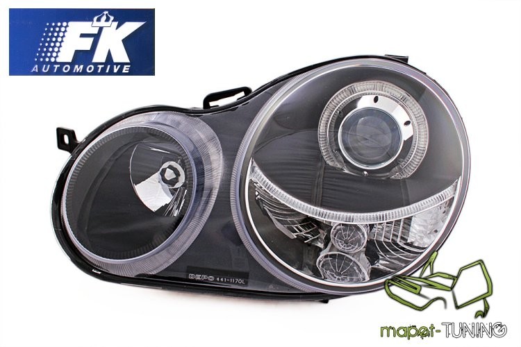 Lampy przednie do: VW Polo 9N - Angel Eyes BLACK - przezroczyste z soczewką + Ringi