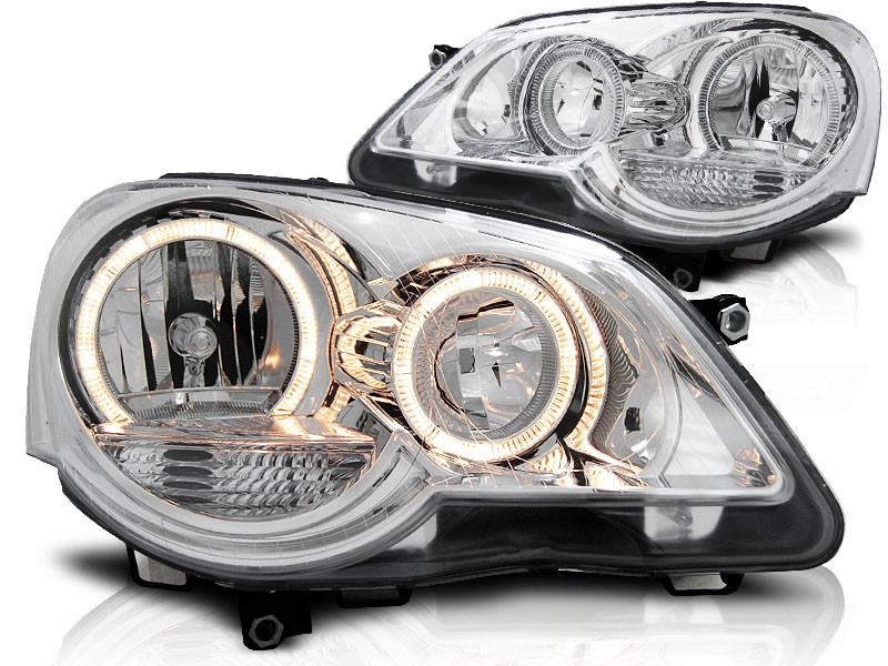 Lampy przednie do: VW Polo 9N3 - Angel Eyes CHROM - Ringi