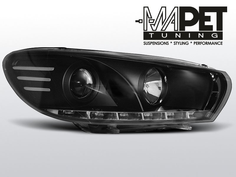 Lampy przednie do: VW Scirocco III - BLACK  - Devil Eyes - Czarne lampy typu z diodowymi świetlnymi paskami
