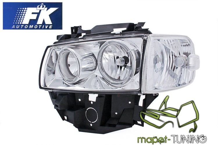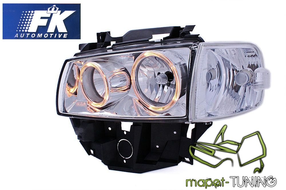 Lampy przednie do: VW T4 Transporter / Bus / Caravelle / Multivan - Angel Eyes CHROM - przezroczyste z soczewką + Ringi