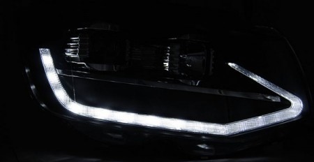 Lampy przednie do: VW T6 BLACK LED DRL - diodowe światła jazdy dziennej z dynamicznym kierunkowskazem