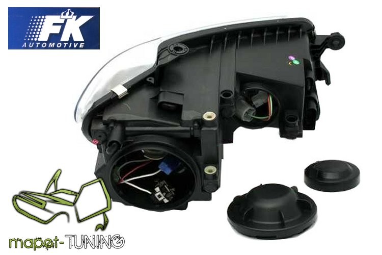 Nowoczesne przezroczyste reflektory typu Clear znanego producenta oświetlenia samochodowego. Wykonane w najnowszych trendach z paskiem diód. Posiadają soczewkę bihalogen.