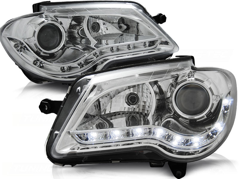 Lampy przednie do: VW Touran - CHROM LED - lampy z diodowymi świetlnymi paskami