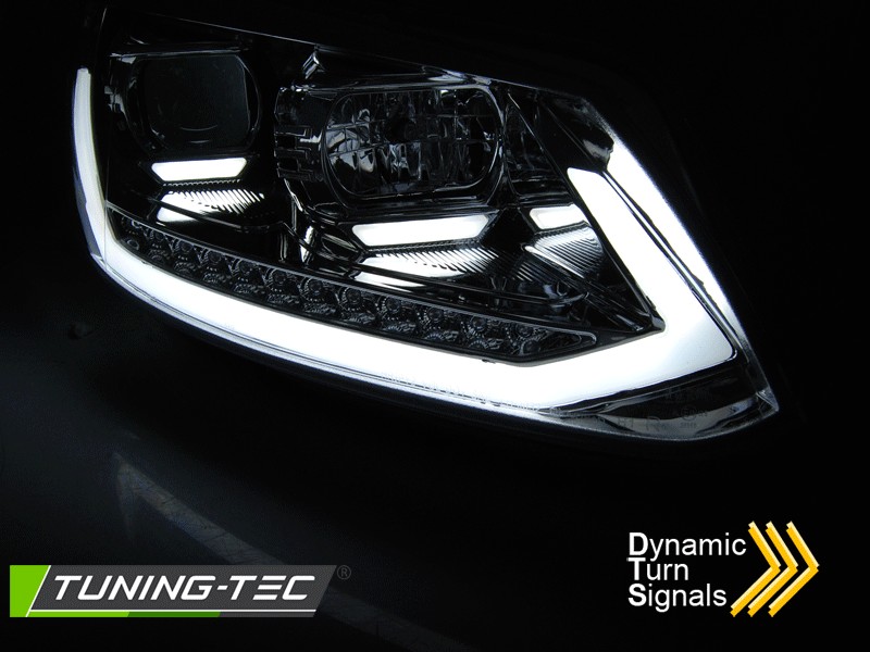 Lampy przednie do: VW Touran - CHROM - lampy z diodowymi świetlnymi paskami oraz dynamicznym kierunkowskazem