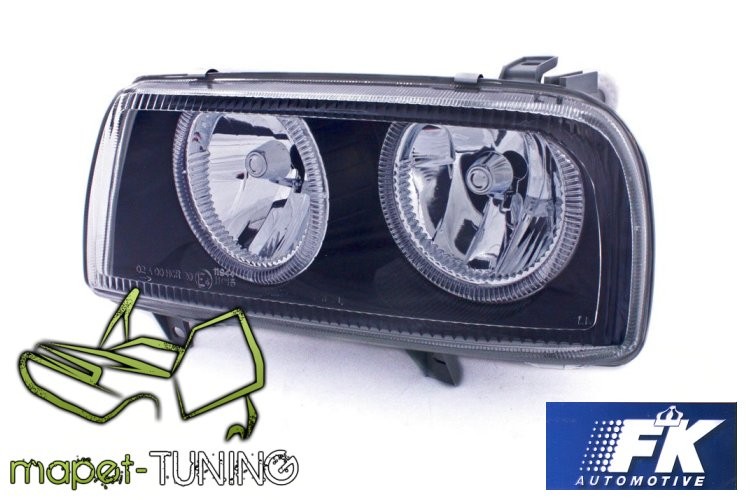 Nowoczesne przezroczyste reflektory typu Clear Black znanego producenta oświetlenia samochodowego. Posiadają 2 świecące ringi.