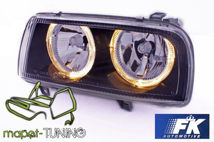 Lampy przednie do: VW Vento - BLACK Angel Eyes -przezroczyste z ciemnym wkładem i ringami