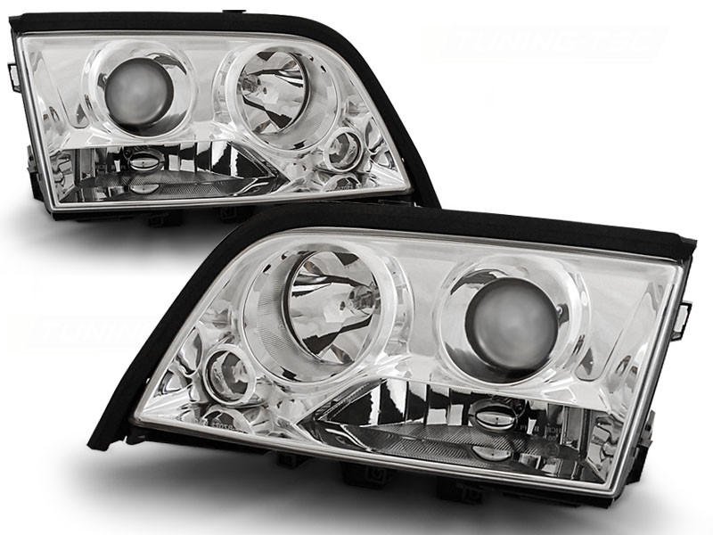 Lampy przednie do: Mercedes C-klasa W202 - CHROM - przezroczyste z soczewką