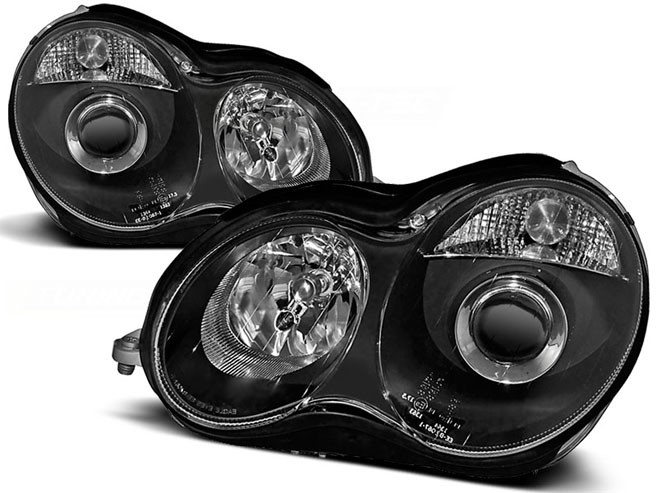 Lampy przednie do: Mercedes C-klasa W203 - BLACK - przezroczyste z ciemnym wkładem z soczewką
