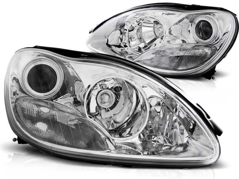 Lampy przednie do: Mercedes S-klasa W220 - CHROM - przezroczyste z soczewką - Xenon Look