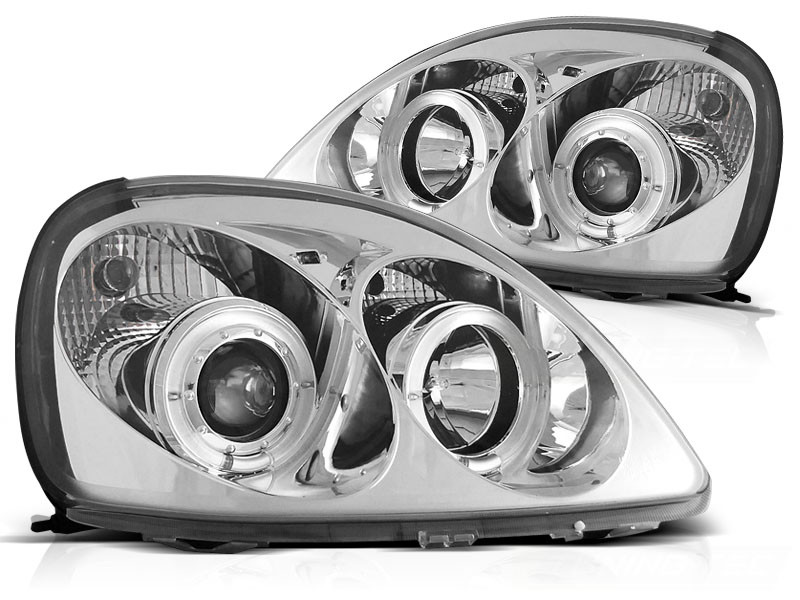 Lampy przednie do: Toyota Yaris - Angel Eyes CHROM - przezroczyste z soczewką + Ringi