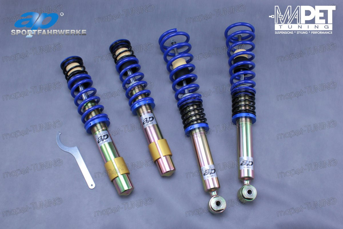 AP Sportfahrwerke od ponad 10 lat oferuje wysokiej jakości zestawy zawieszeń. Jakość oraz bezpieczeństwo produktów AP potwierdzone są certyfikatem TUV. Lata w branży zawieszeń pozwoliły na spełnienie najwyższych oczekiwań entuzjastów dynamicznej jazdy. W zawieszeniach AP najważniejszym aspektem jest dynamika jazdy oraz bezpieczeństwo. Pomimo bardzo dobrej jakości uzyskano świetny stosunek ceny do jakości.