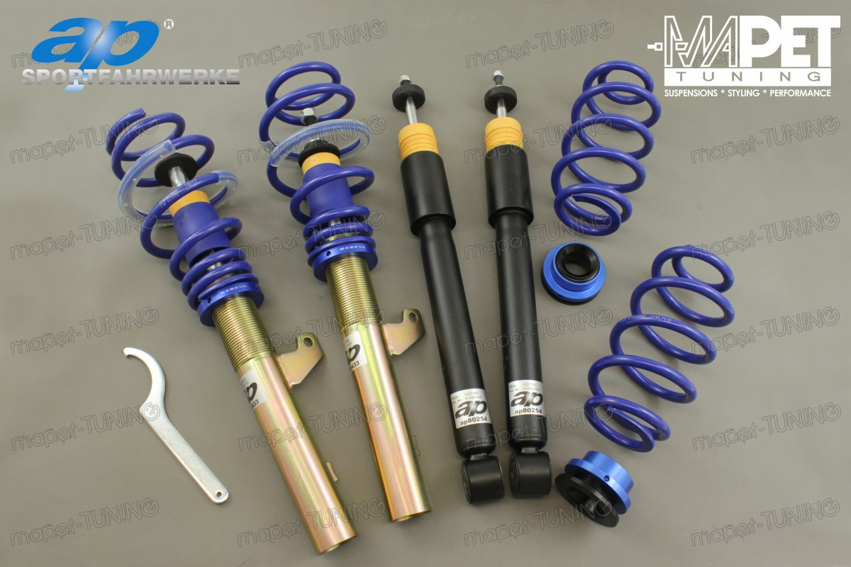 AP Sportfahrwerke od ponad 10 lat oferuje wysokiej jakości zestawy zawieszeń. Jakość oraz bezpieczeństwo produktów AP potwierdzone są certyfikatem TUV. Lata w branży zawieszeń pozwoliły na spełnienie najwyższych oczekiwań entuzjastów dynamicznej jazdy. W zawieszeniach AP najważniejszym aspektem jest dynamika jazdy oraz bezpieczeństwo. Pomimo bardzo dobrej jakości uzyskano świetny stosunek ceny do jakości.